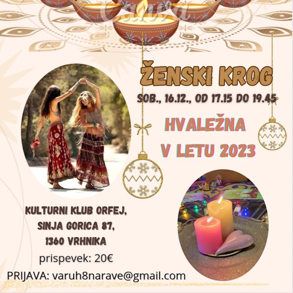 Domov Sezona Galerija Dobrodošla ljuba ženska v ženski krog na izhodišče razmišljanja in čutenja HVALEŽNA V LETU 2023 izveden po načelih Mother Nature.
