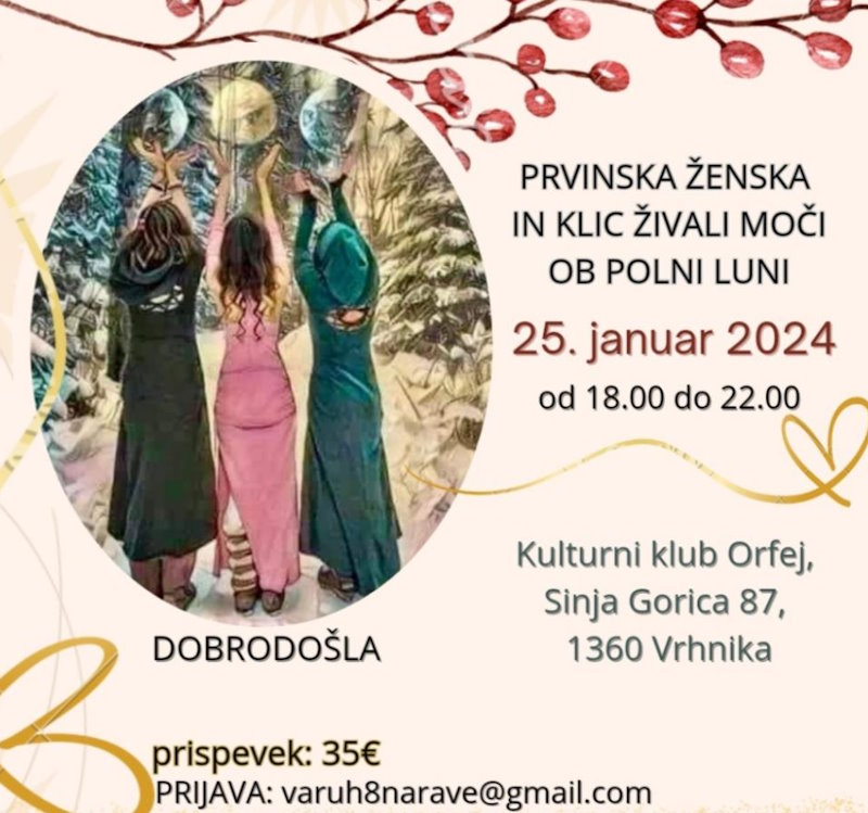 Prvinski izkustven krog žensk in klic živali moči ob polni luni v času zime, ko prevladuje element vode z delavnico šamanskih tehnik.